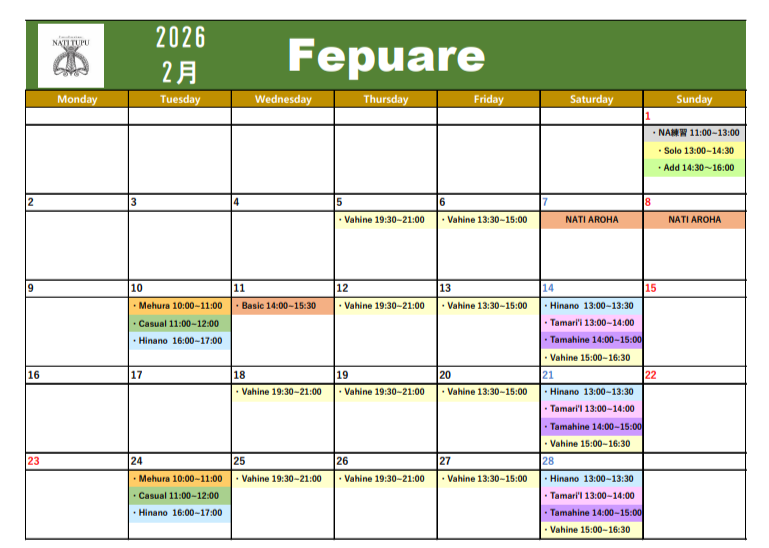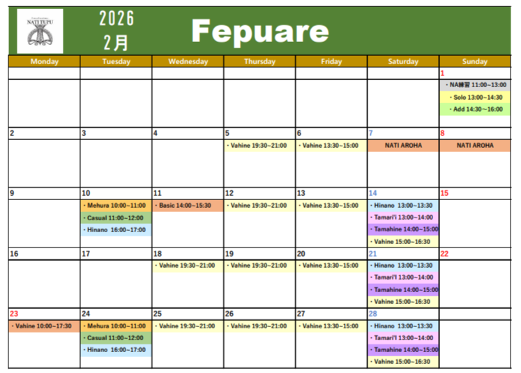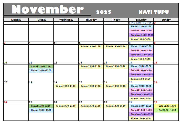 レッスンスケジュール