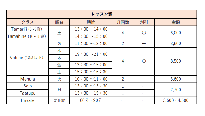 レッスンスケジュール