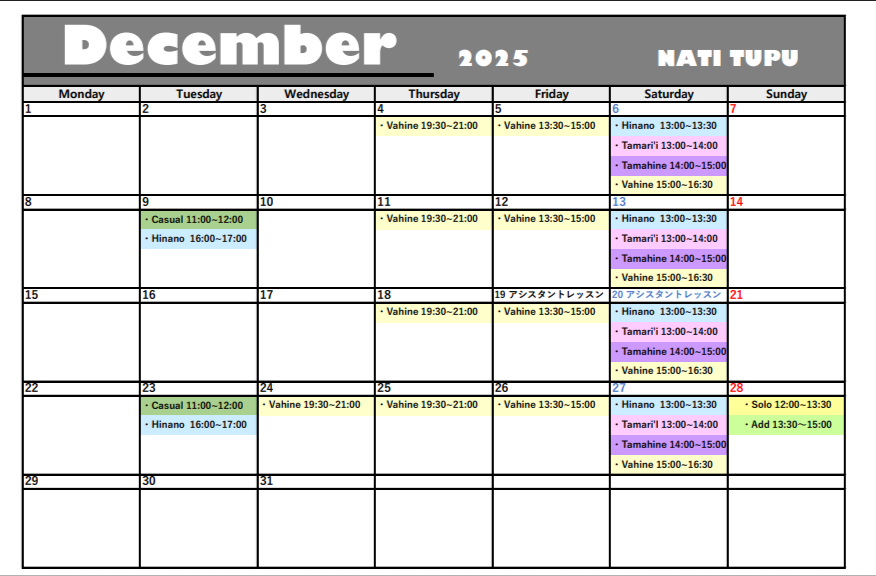 レッスンスケジュール